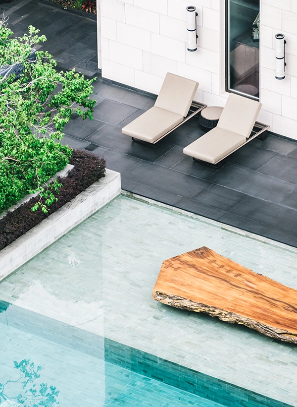 Durable and refined, porcelain pool tiles offer modern aesthetics and minimal upkeep.