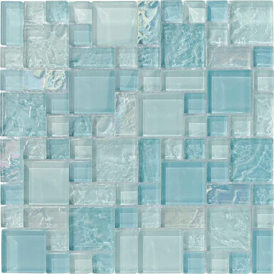 Glass Pool Mosaic Tile Sea Foam Blend for swimming pool, shower walls, backsplash, Jacuzzi, and spa. Made with translucent glass for a better reflection effect under water. This mosaic tile is mesh mounted and sold by the sheet.