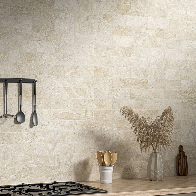 Diana Royal Marble is an elegant beige natural stone quarried in Turkey, distinguished by its warm background and irregular white veining. Its dynamic diagonal movement reflects nature’s shaping power, creating a refined and sophisticated look that allows seamless continuity between interior and exterior spaces.